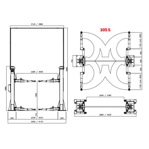 | Наименование | Подъемник 2х стоечный г/п 5 т симметричный электромеханический 380В 305S |