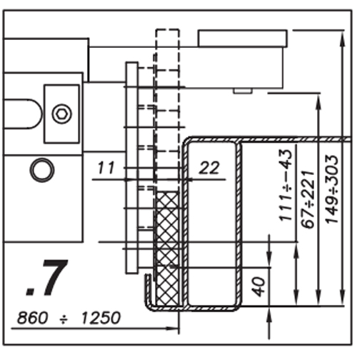Минимальное удлинение лап 935 мм